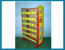 Open racks kept on floor with side and top branding options, fitted with wheels as per the need of the client, very effective for all kind of markets, offers large capacities for large range or multiple products, induce impulse buying in the market and enhances brand awareness. |