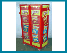 These racks are floor standing and prevent rats from destroying anything stored inside , they also work as dispensing units by opening the front doors during the day time, Can be fitted with wheels for easy maneuverability according to the need of client, these rack support attractive brandings on all sides front and back. These are very effective for use in traditional markets |