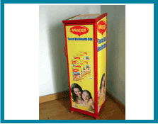 Flow packs dispensers with branding header for the brand awareness, very effective in small shops, its low price enables large numbers and multiple outlets coverage can be used in both traditional and modern trade outlets. |
